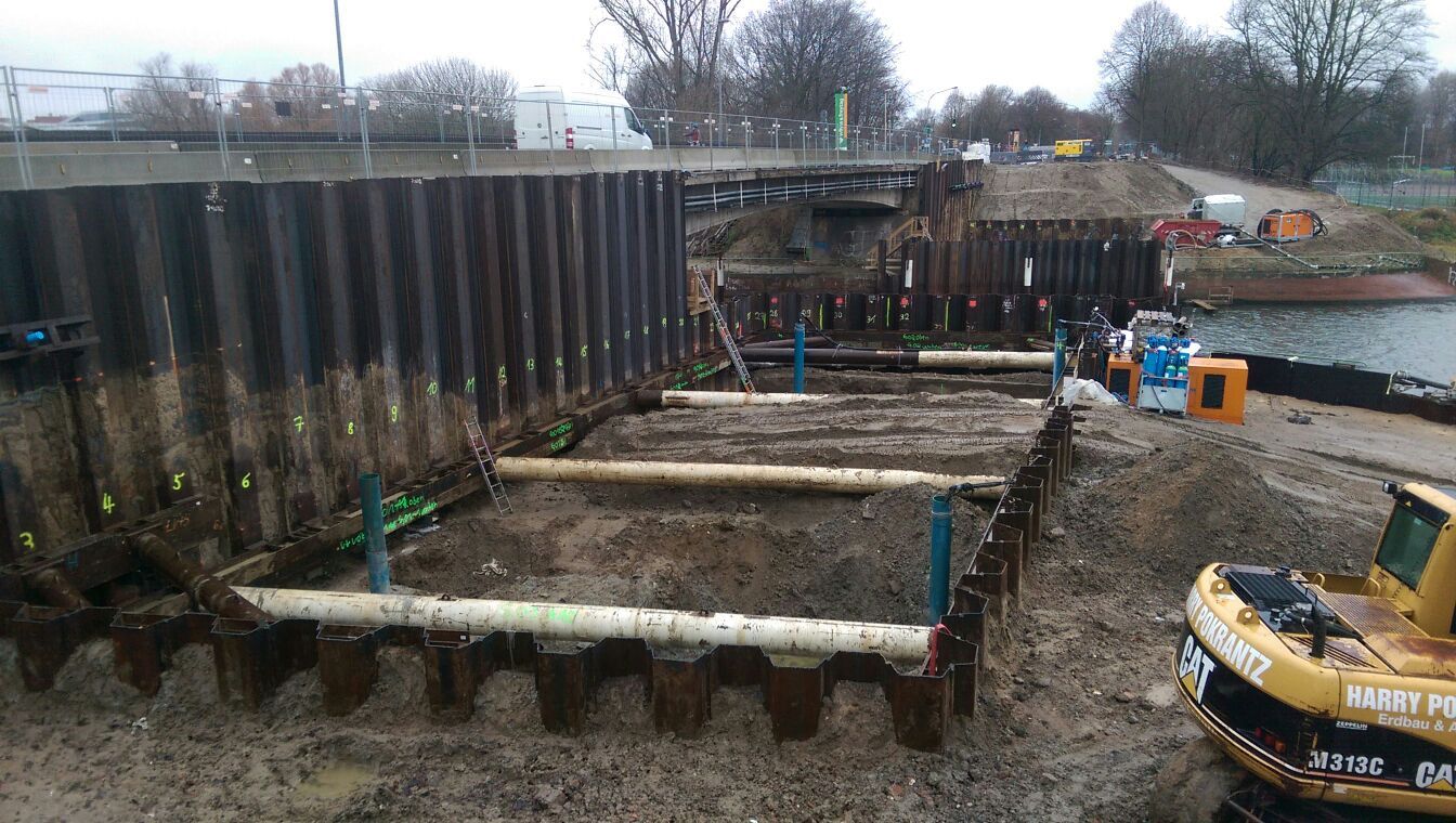 - Baugrubenaussteifung diverse Docks herstellen, liefern, einbauen und rückbauen z.T. in Sperrpausen (Nachtarbeit)